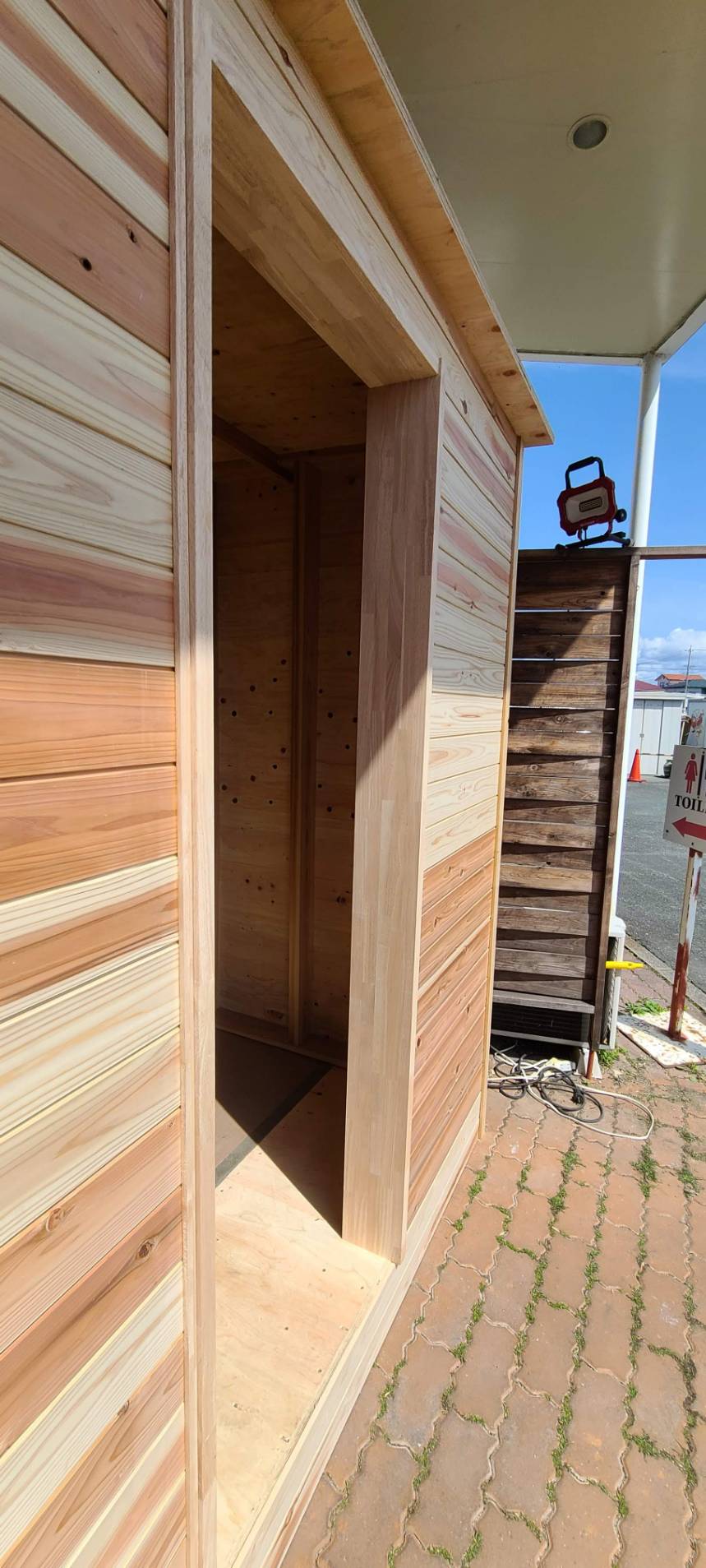 既存店舗の一角に、木の質感を生かした増築工事を行ないました。