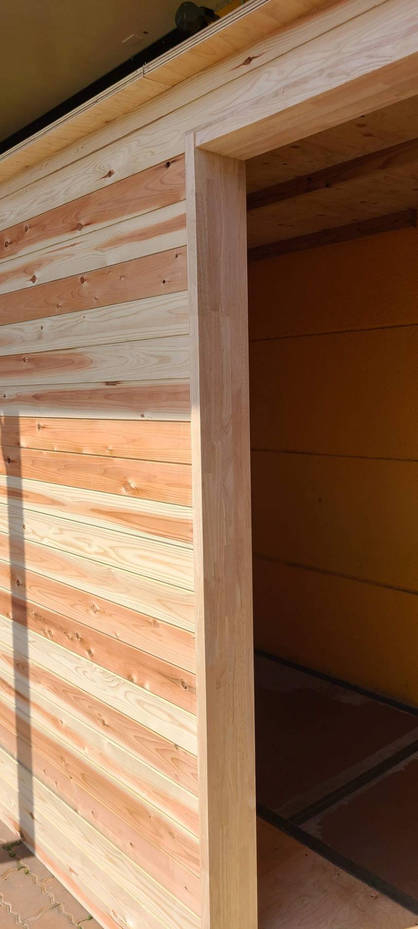 外観は周囲の景観になじむよう板張り仕上げとし、入口まわりの納まりも丁寧に施工。